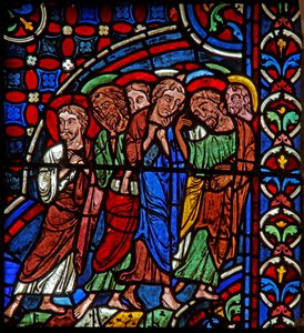 Window depicting an angel leads Lot out of the city(Window w5-R depicting an angel leads Lot out of the city )French School |