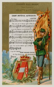 century · advert · advertisement · advertisements · adverts · arlatte · ephemera · flag · flags · historical · history · illustration · illustrations · lyrics · military · music · notation · musical · notes · nationalism · nationalist · postcard · postcards · russian · imperial · song · Private Collection / Bridgeman Images · / Look and Learn |