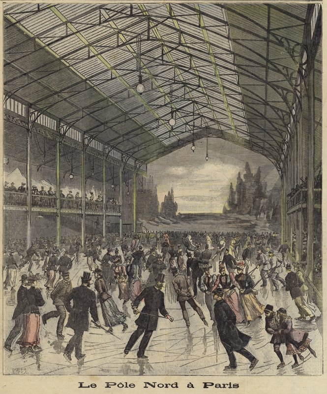 le petit journal · rinks · skating · people · women · children · fashions · clothing · france · leisure · pastimes · interiors · century · The North Pole · Paris · Private Collection / Bridgeman Images · / Look and Learn