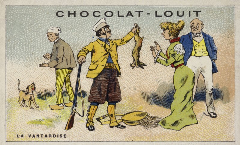 france · french · national · characteristics · behaviour · emotions · types · characters · humour · amusing · jokes · satire · la vantardise · exaggeration · hunting · hunter · rabbit · la chase · mother · father · Private Collection / Bridgeman Images · / Look and Learn |