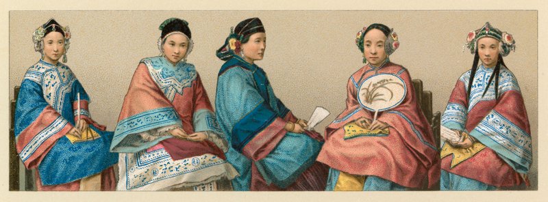 costume · dress · clothes · historical · history · national · fashion · racinet · china costume · chinese · Private Collection / Bridgeman Images · / Look and Learn |
