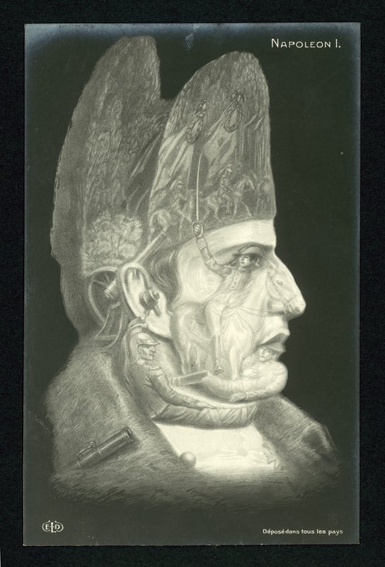 optical illusion · face · french · general · royalty · head · emperor · 19th century · napoleon i · portrait · napoleon bonaparte · soldiers · Private Collection / Bridgeman Images · / Look and Learn |
