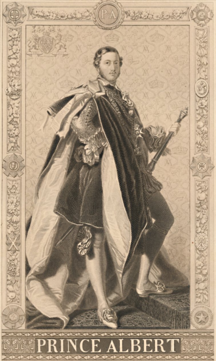 standing · people · male · frame · clothes · british · decorative · royal · robes · robe · dress · illustration · century · britain · royalty · concept · hand on hip · one person · posture · monochrome · framed · prince · publication · 19th century · black white · black and white · nineteenth century · sceptre · history · historic · consort · prince consort · prince albert · albert · franz xaver winterhalter · engraving · portrait · thomas · archer · prince consort · prince albert of saxe-coburg-gotha · saxe-coburg-gotha · albert · thomas archer · g levy · blackie son · blackie · blackie son ltd · blackie and son · levy · winterhalter · franz xaver · winterhalter · francis xavier · francis xavier winterhalter · franz xavier winterhalter · prince albert of saxe-coburg and gotha · illustrations of english scottish history · The Print Collector/Heritage Images