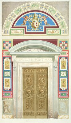 Doorway to the Raphael Loggia at the Vatican, from 'Delle Loggie di Rafaele nel Vaticano', engraved by Giovanni Ottaviani, published c.1772-77(Doorway to the Raphael Loggia at the Vatican, from 'Delle Loggie di Rafaele nel Vaticano', engraved by Giovanni Ottaviani (c.1735-1808), published c.1772-77 (hand coloured engraving))G. and Camporesi, P. Savorelli |