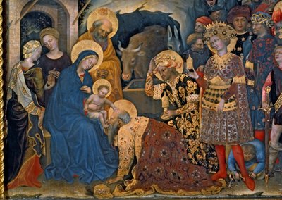 One of the Three Kings Kneels in Front of the Christ Child, the King's Crown on the Ground(One of the Three Kings kneels in front of the Christchild, the king's crown on the ground (tempera on wood))Gentile da Fabriano |