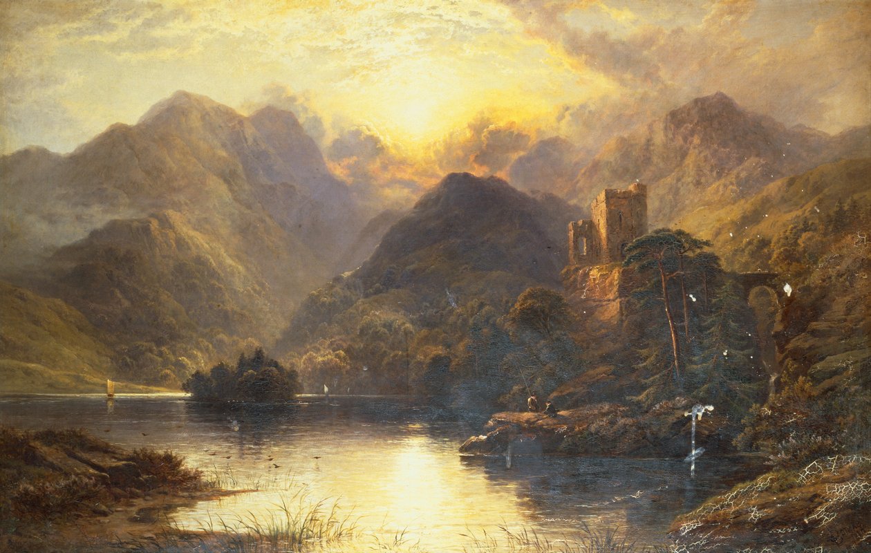 19th century · 19 century · xix century · xixth century · nineteenth century · c19th · 19 19th xix xixth century · 19 xixe xix xixe siècle · 19 nineteenth nineteenth nineteenth century · 19. century · early xix century · late nineteenth century · two persons · 2 persons · two people · 2 people · arts · countryside · contryside · green pastures · rural landscape · rural scene · rural area · rural · rural region · rural life · castle · castles · small castle · old castle · castle complex · fairy tale castle · fairytale castle · royal castle · the castle · dwelling · housing · accomodation · dwelling places · colour · colours · color · coloured · colors · colorfull · colored · scotland · scottish · scotland scotish · picts · great britain · british · britain · united kngdom · britain british · united kingdom · brit · british isles · britons · europe · european · europen · europe map · lake · lakes · pond · mountain lake · fjord · fjords · millpond · loch · lochs · sunrise · dawn · morning sun · mountain · mountains · moutain · high mountain · mountain scenery · valley · mountain peaks · landscape · landscapes · landcape · landscaoe · landscapes (representations) · fishing · to fish · fishing implements · painting · paint · paintings · painting: · ruin · ruins · ruination · ruinous · dilapidation · external view · outside view · oil on canvas · oil on cnvas · oil painting · oil on panel · oil paintings · oil paints · oil painting on wood · oil (painting) · mzpainting · scottish highlands · highlands · highland · highlander · highlanders · a’ ghàidhealtachd · fisherman · fishermen · fishingman · fisherwoman · anglers · fishers · Fisher Folk · · Private Collection / Bridgeman Images |