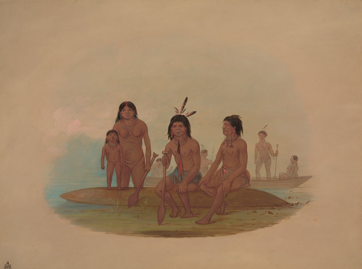 transport · transportation · river · south america · portrait · female · women · woman · people · male · girl · girls · group · family · sitting · painting · country · marriage · local · fishing · continent · geography · color · hunting · hunter · fisherman · fishermen · tribe · tribal · native · native american · south american · paddle · location · canoe · century · paddles · riverbank · wives · wife · seated · chief · amazon · american indian · oil painting · united states of america · colour · 19th century · water transport · daughter · nineteenth century · american · history · america · geographical feature · indigenous · portrait · united states · george catlin · catlin · george · fisherfolk · heritage art · painting · marahua · Heritage Art/Heritage Images