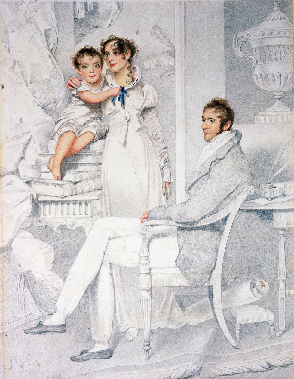 male · english author · writer · drawing · husband · wife · child · parents · family · interior · georgian · regency · young boy · mother · father · conversation piece · Harris Museum and Art Gallery, Preston, Lancashire, UK / Bridgeman Images |