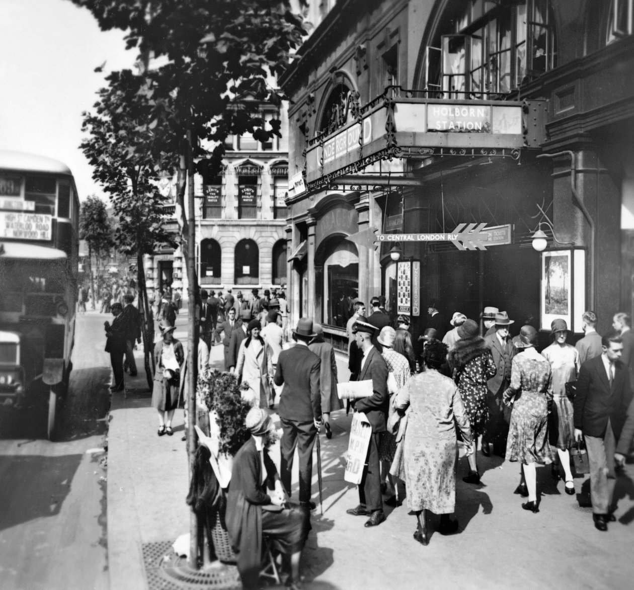 transport · transportation · exterior · building · buildings · london · england · female · women · woman · people · male · occupation · clothes · rush hour · headdress · lighting · uniform · road sign · station · pavement · sidewalk · dress · lamp · umbrella · underground station · century · double decker · newspaper · profession · lady · concept · outside · poster · twenties · camden · headgear · monochrome · road transport · omnibus · double-decker · black white · black and white · 1920s · 20th century · tube station · museum of london · holborn · holborn station · newspaper seller · tgn · photograph · two decker · george davison reid · reid · george davison · reid · george · Museum of London/Heritage-Images |