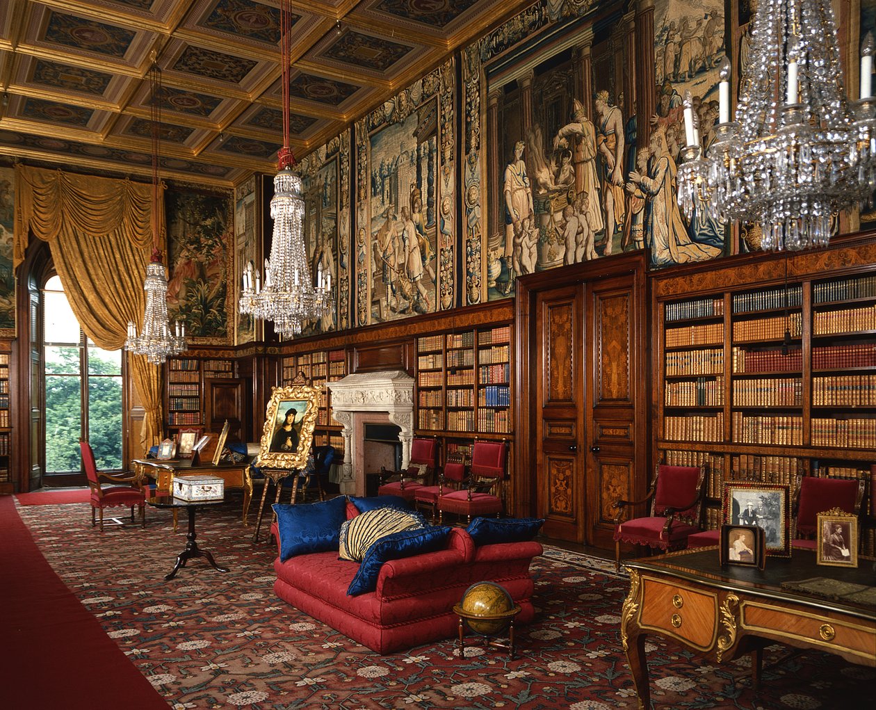 interior · victorian renaissance style · chandeliers · tapestries · furniture · Eastnor Castle, Herefordshire, UK / Bridgeman Images |