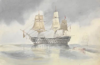 19th century · boat · transport · colour · drawing · united kingdom · europe · navy · army · ship · wind · weather · sailing boat · watercolour · mzdrawing · · National Maritime Museum, London, UK / Bridgeman Images |