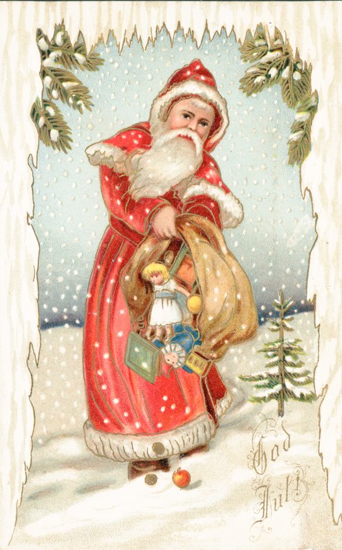 father christmas · santa claus · xmas · card · greeting · greetings · retro · vintage · snow · winter · Private Collection / Bridgeman Images · / Look and Learn