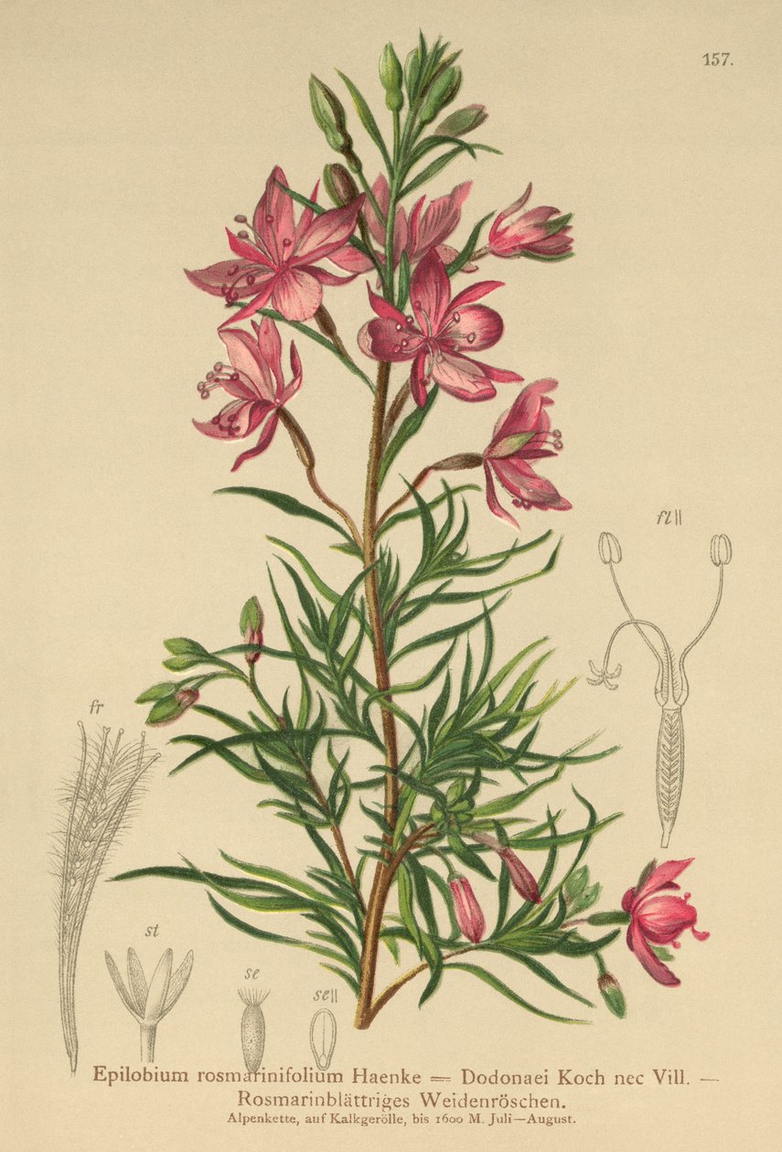 Rosemary-leaved Willowherb(rosemary-leaved willowherb (Epilobium rosmarinifolium, Epilobium Dodonaei) )German School |