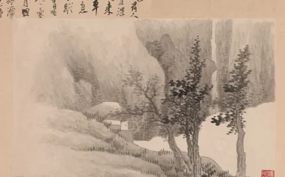 nature · tree · landscape · plant · plants · arts · mountain · mountains · country · china · chinese · museum · geography · location · century · literature · 17th century · calligraphy · colour · the met · metropolitan museum of art · the metropolitan museum of art · poem · poetry · black white · black and white · trees · seventeenth century · geographical feature · landscape · ink on paper · ink on paper · heritage art · album of sixteen paintings · album of sixteen paintings · gong xian · xian · gong · gong banqian · banmujuren · qingliangshanxiaren · Heritage Art/Heritage Images