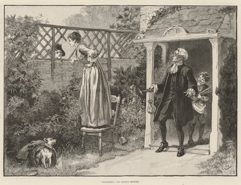 surprised · gardens · romance · humour · Private Collection / Bridgeman Images · / Look and Learn |
