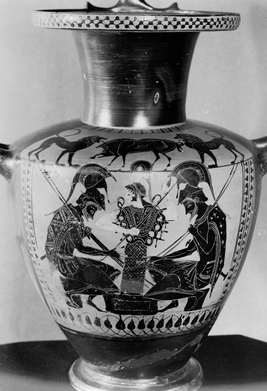 Attic Black Figure Hydra Depicting Achilles and Ajax Playing Dice(Attic black figure hydra depicting Achilles and Ajax playing dice (earthenware) )Greek |