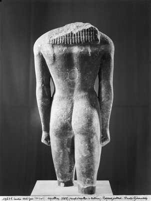 torse de couros · statue · archaic · aktion · akri · from temple of apollo · male · nude · back · hair · no Ma 688 · Louvre, Paris, France / Bridgeman Images