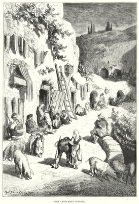 The caves of gypsies, in Sacro Monte, in Granada. Drawing by Gustave Dore, to illustrate his trip to Spain in 1862, accompanied by Ch. Davillier. Engraving in 'Le tour du monde', edited by Edouard Charton(The caves (underground houses) of gypsies, in Sacro Monte, in Granada. Drawing by Gustave Dore (1832-1883), to illustrate his trip to Spain in 1862, accompanied by Ch.Davillier. Engraving in “” Le tour du monde””, edited by Edouard Charton)Gustave Dore |