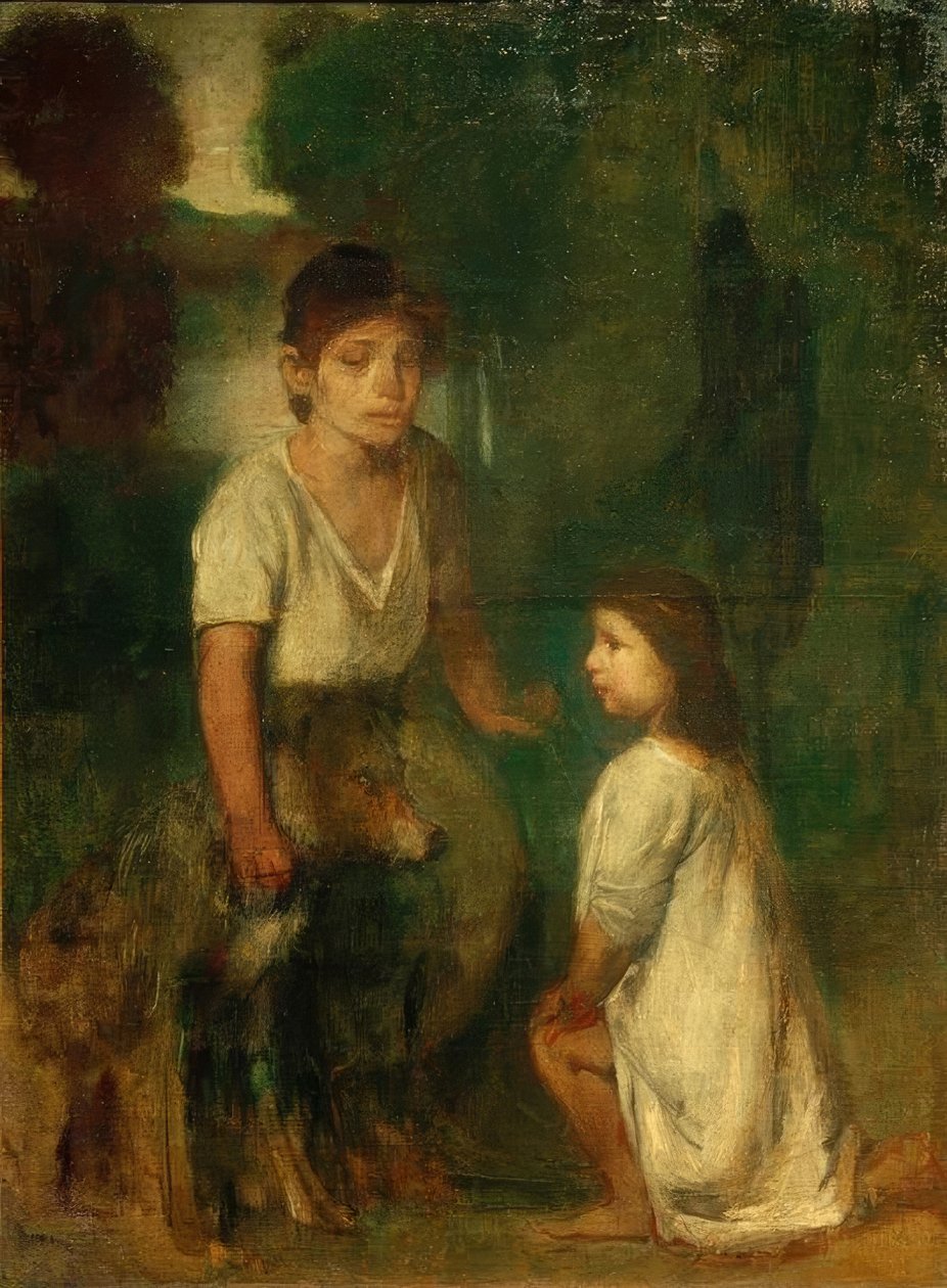 Two Children with Dog(Zwei Kinder mit Hund)Hans von Marées |