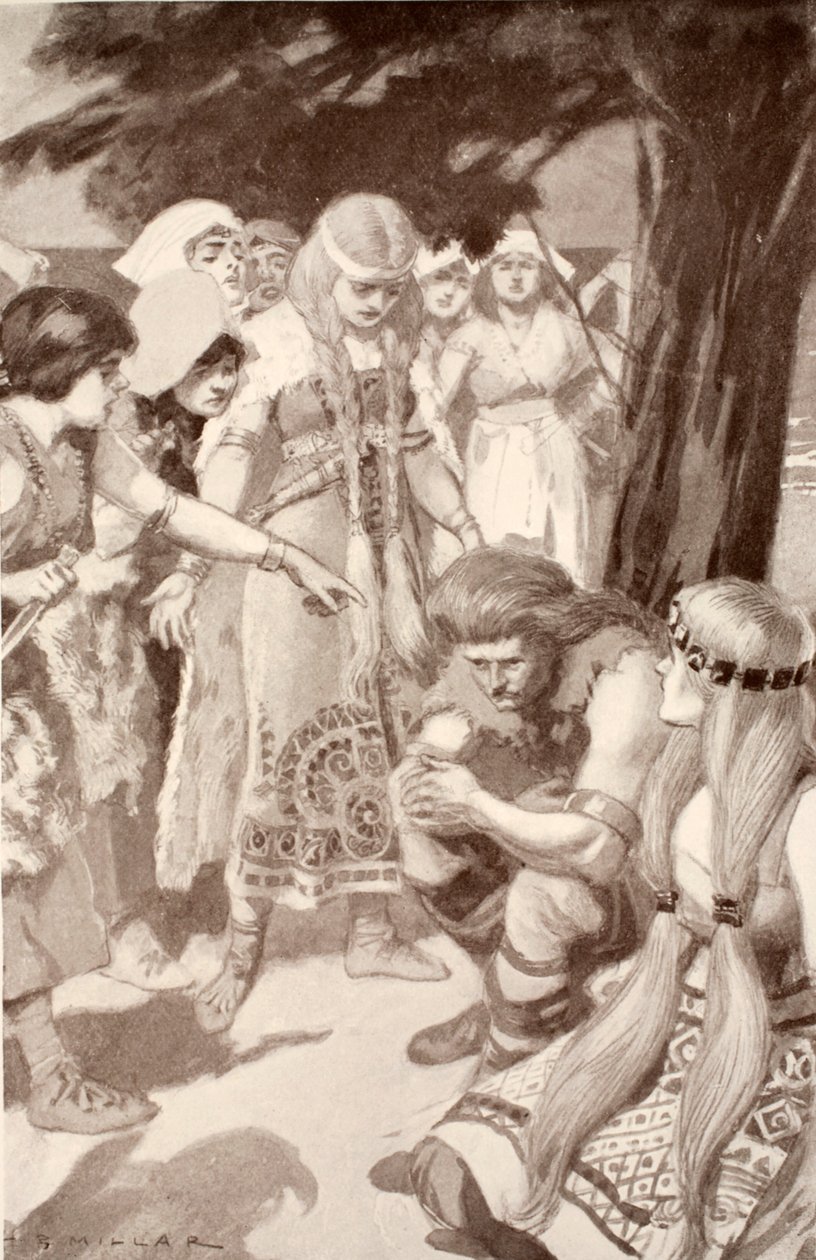 Cuchulainn Rebuked by Emer, Illustration from 'Celtic Myth and Legend' by Charles Squire, 1905(Cuchulainn rebuked by Emer, illustration from 'Celtic Myth and Legend' by Charles Squire, 1905 )Harold Robert Millar |