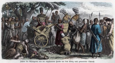 Ancient Egypt: The Prisoners Brought Before the Victorious Pharaoh Ramses II, 1866(Ancient Egypt: the prisoners brought before the victorious pharaoh Ramses II, to have their hands cut off, 1866 )Heinrich Leutemann |