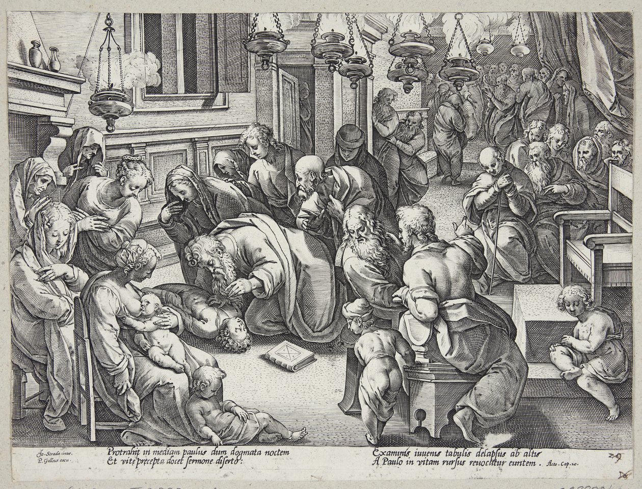 St. Paul raising Eutychus(St. Paul raising Euthychus)Hendrick Goltzius,Jan van der Straet(after model by),Philips Galle(publisher) |