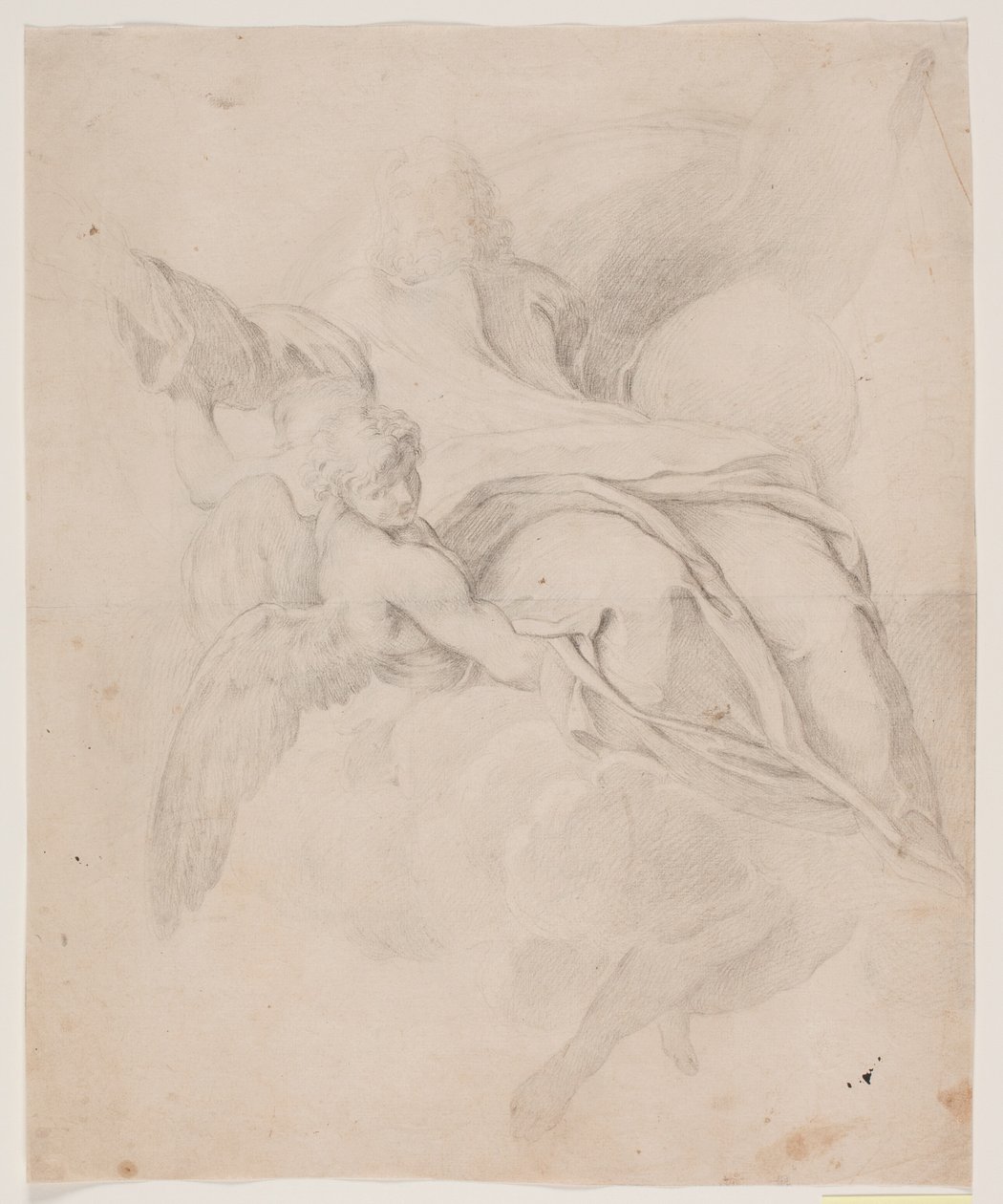 God the Father and the Globe, Carried by Angels(Gudfader og verdenskuglen, båret af engle.)Hendrik Krock |