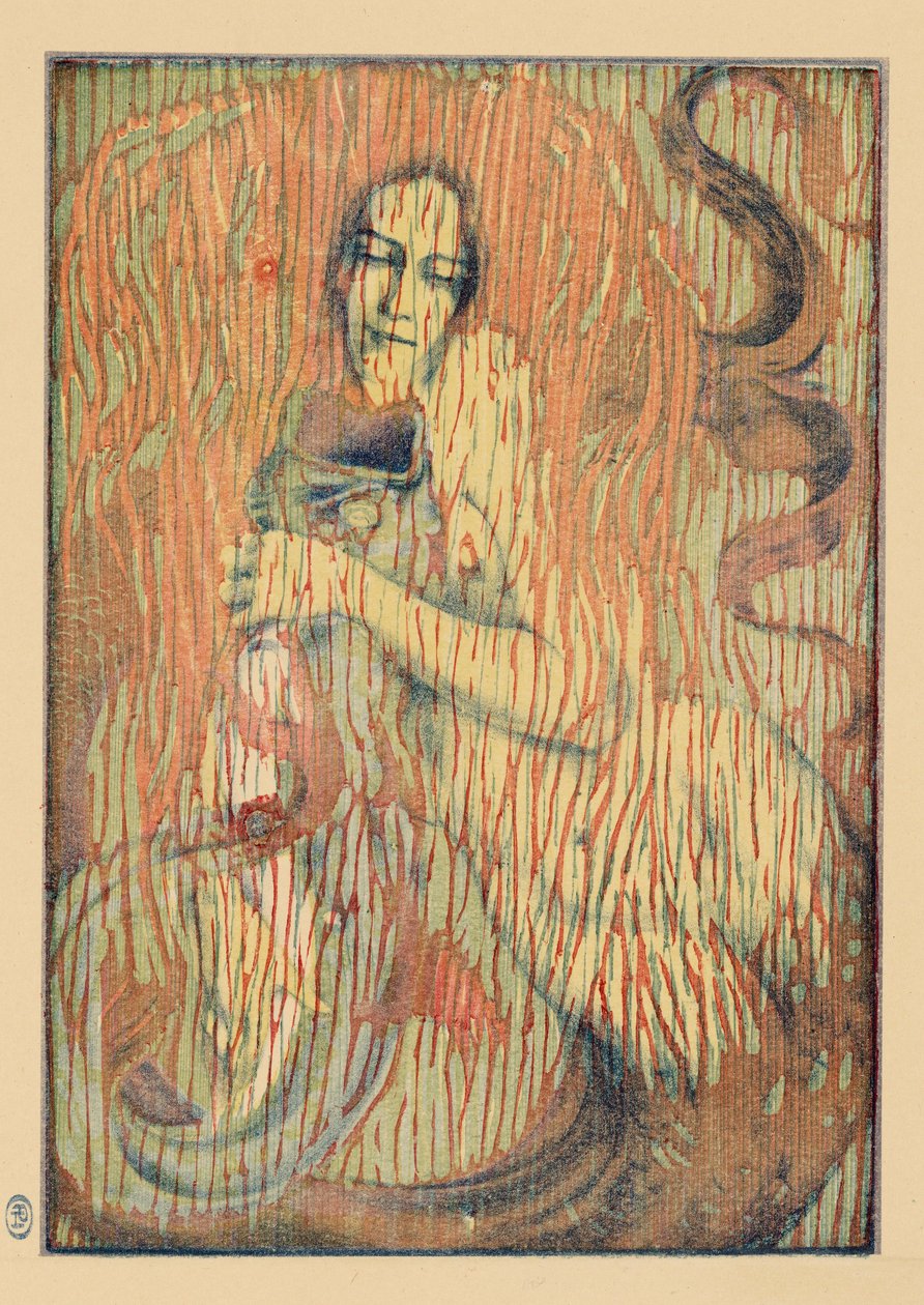 1897 · color woodcut from three blocks and lithograph in blue on tan wove paper