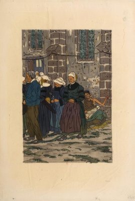 poverty · beggar · christianity · french · society · chapel · church · catholic · church · church · country · people · country life · procession · religion · social · costume · folklore · geography · brittany · finistere · france · sainte-anne-la-palud · technology · printmaking · color woodcut · graphics · / akg-images