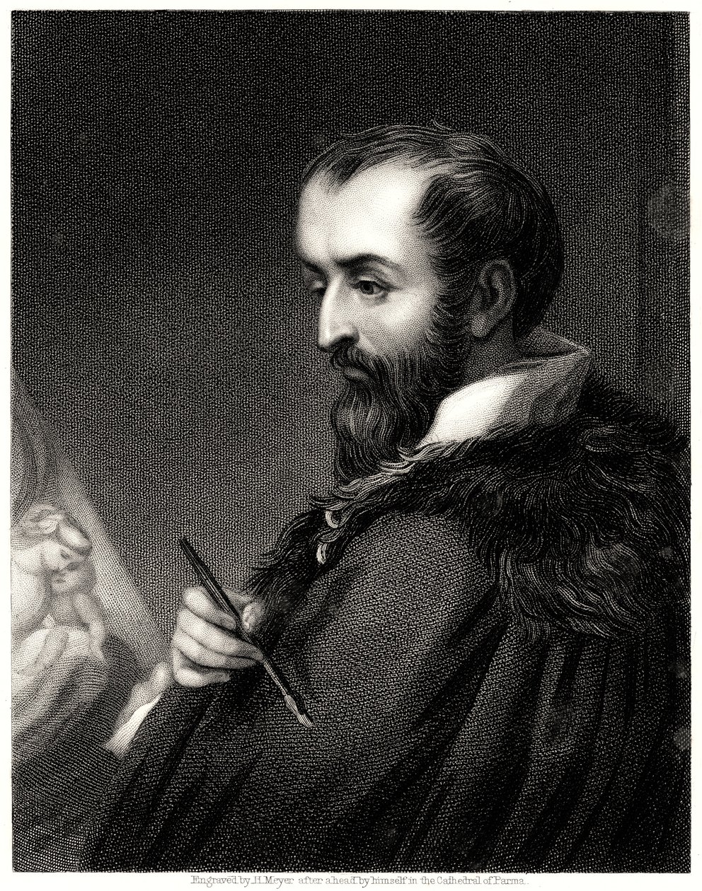 portrait · italy · italian · people · male · arts · painting · country · occupation · artist · painter · renaissance · location · century · profession · paintbrush · self-portrait · self portrait · monochrome · black white · black and white · 16th century · sixteenth century · correggio · engraving · portrait · antonio · henry meyer · antonio correggio · antonio allegri · allegri · meyer · henry · The Print Collector/Heritage Images