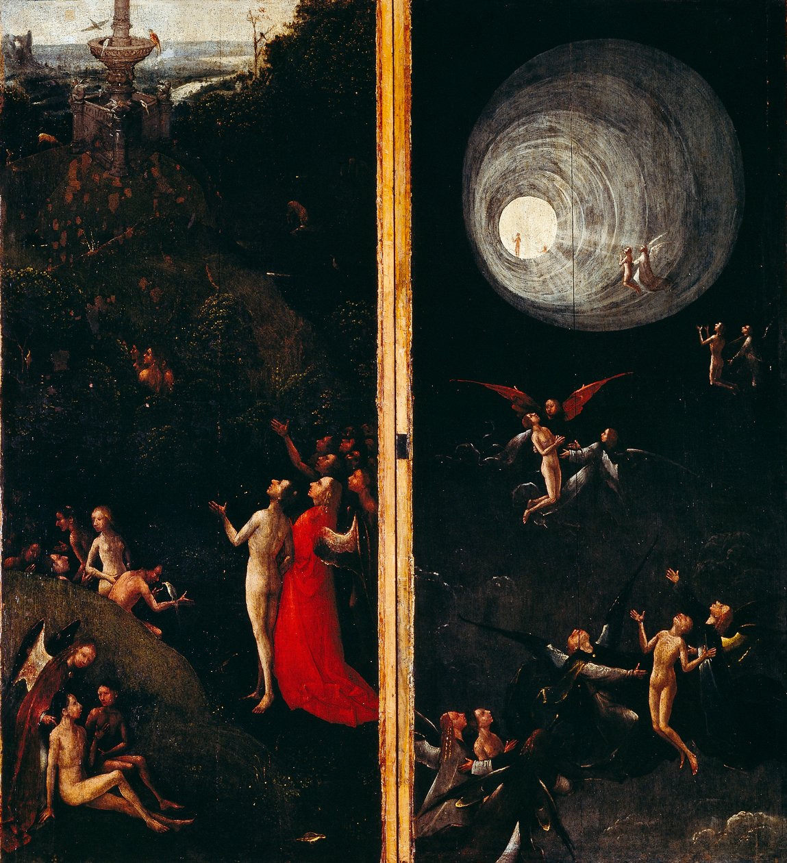 angel · angels · large group of people · women · anticipation · kneeling · dutch culture · spirituality · standing · heaven · historical clothing · fine art painting · human representation · vertical · 16th century · ascending · paradise · arms up · last judgement · eternity · naked · outdoors · christianity · sinners · dress · new testament · gesturing · religious illustration · illustration and painting · painting · religion · tunnel · hieronymus bosch · Light At The End Of The Tunnel · religion and worship · Palazzo Ducale, Venice, Italy / Bridgeman Images |
