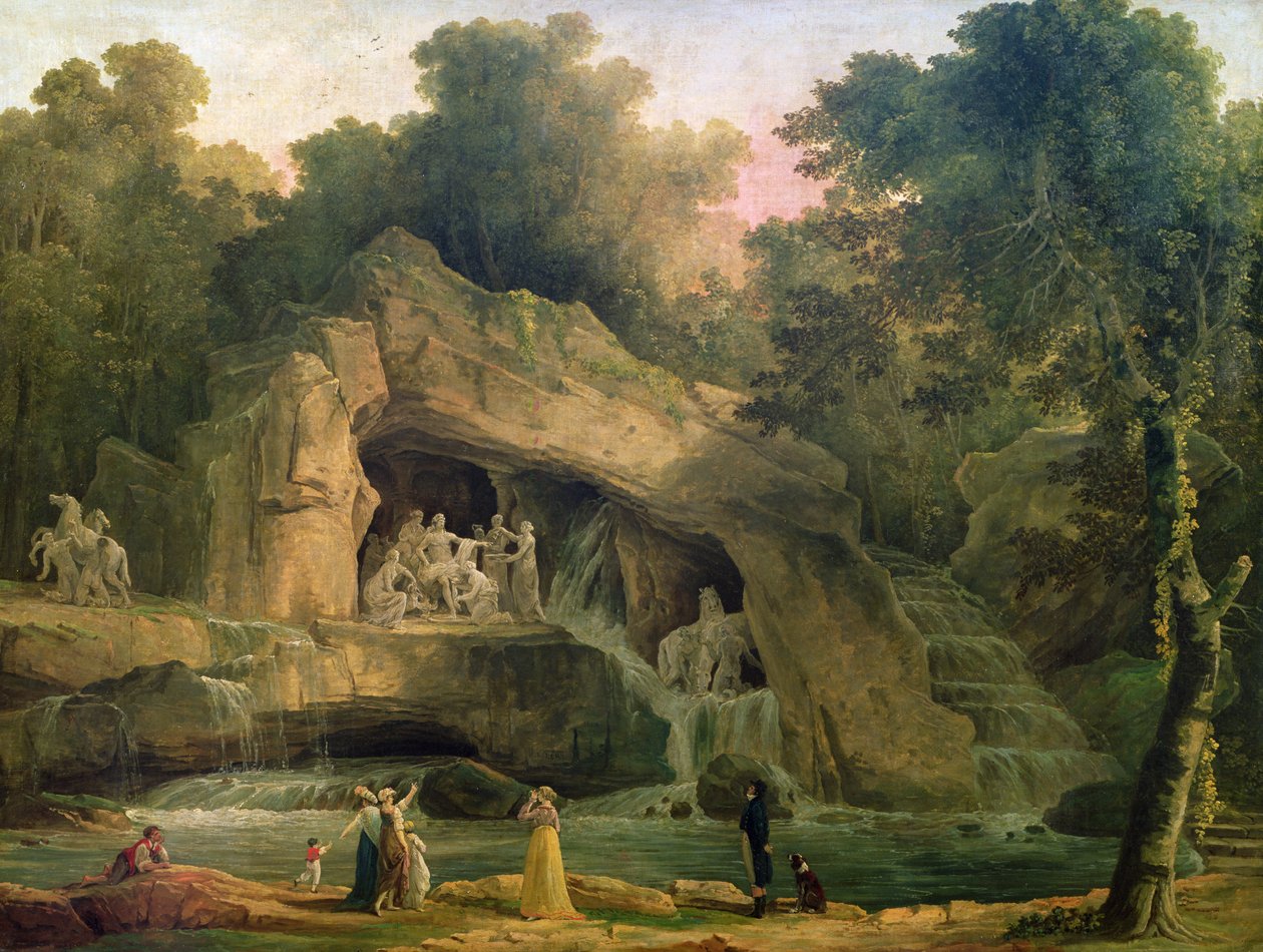 grotto · grove · baths of apollo · chateau de versailles · garden · statue · visitors · sculpture · waterfall · c18th · c19th · #166 · cascade · grotto · tourists · Musee de la Ville de Paris, Musee Carnavalet, Paris, France / Bridgeman Images