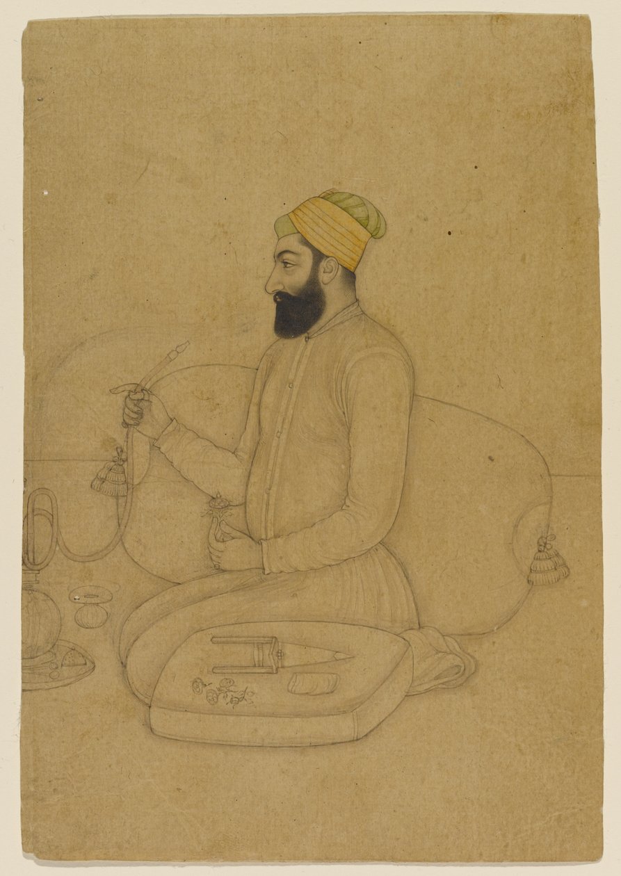 male · kneeling · turban · hookah · smoking · Brooklyn Museum of Art, New York, USA / Bridgeman Images |