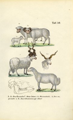19th century · germany · europe · anatomy · goat · farm animal · colour · skull · skeleton · natural history · zoology · lithograph · print · mzengraving · zoological plate · Private Collection / Bridgeman Images