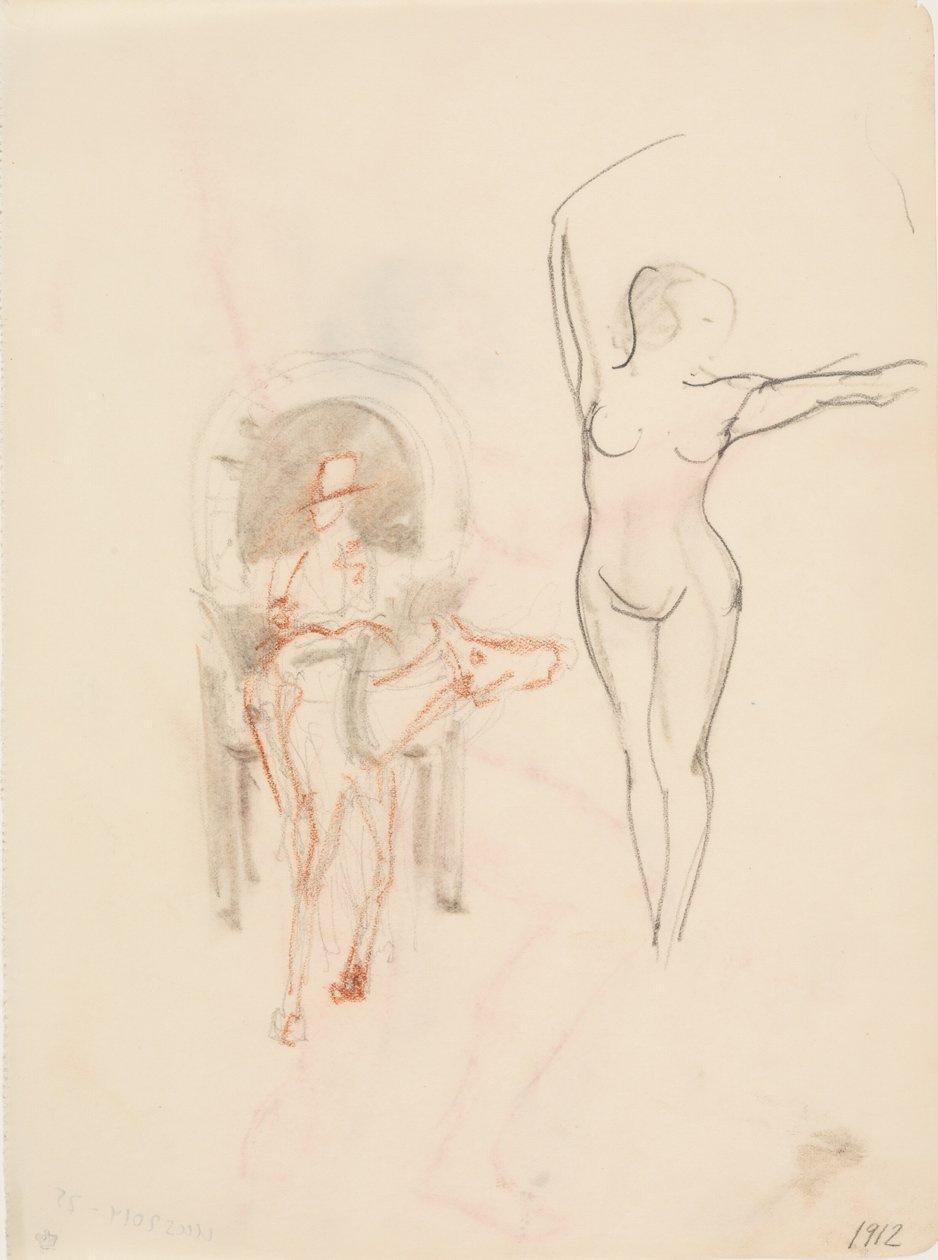 Undated · Pencil, black and red crayon