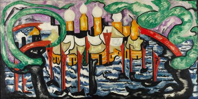 abstract · brown · blue · yellow · church · white · green · black · mauve · brown · Composition