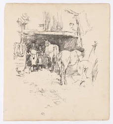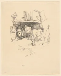 exterior · outdoors · animal · people · male · work · animals · horses · horse · arts · doorway · country · occupation · washington · rustic · location · century · gallery · profession · print · yard · concept · blacksmith · printing · apprentice · art gallery · united states of america · 19th century · black white · black and white · national gallery of art · lithograph · nineteenth century · rural · american · america · rural life · lithography · outside · working · lithograph · portrait · united states · james abbott mcneill whistler · james mcneill whistler · j.a mcneill whistler · ja mcneill whistler · whistler · james abbott mcneill · whistler · james mcneill · regionalism · james mcneil whistler · art centre · lithotint · gilded age · heritage art · print · james a. mcneill whistler · lithograph in black on wove paper · whistler · james a mcneill · rosenwald collection · j. mcneill whistler · james a mcne · Heritage Art/Heritage Images