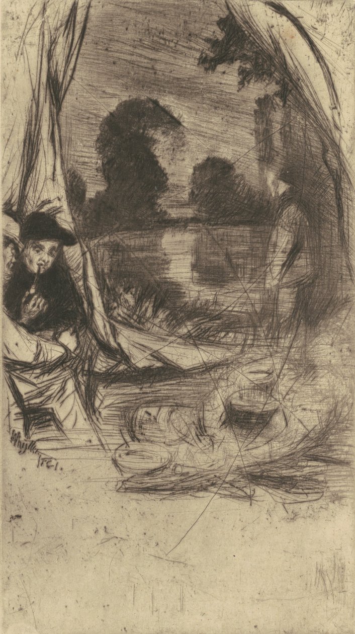nature · tree · drypoint in black on laid paper · james a mcneill whistler · whistler · james a mcneill · rosenwald collection · people · male · waiting · sitting · plant · plants · arts · pipe · country · lake · cooking · cookery · campfire · fire · geography · washington · smoking · lakeside · rustic · camping · location · century · gallery · camp · print · concept · two people · underneath · under · engraving · below · art gallery · united states of america · 19th century · black white · black and white · national gallery of art · tobacco pipe · nineteenth century · rural · american · trees · america · camp fire · geographical feature · rural life · portrait · drypoint · united states · james · james abbott mcneill whistler · james mcneill whistler · j.a mcneill whistler · ja mcneill whistler · whistler · james abbott mcneill · whistler · james mcneill · regionalism · james mcneil whistler · art centre · gilded age · heritage art · print · drypoint · whistler · james a. mcneill · Heritage Art/Heritage Images