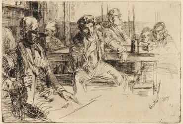 building · people · male · child · children · interior · group · sitting · arts · country · occupation · tables · view · british · public house · washington · nautical · table · location · century · gallery · britain · profession · inside · furniture · tavern · sailor · longshoremen · engraving · art gallery · united states of america · 19th century · indoors · black white · black and white · national gallery of art · longshoreman · nineteenth century · american · america · etching · etching · portrait · drypoint · united states · james abbott mcneill whistler · james mcneill whistler · j.a mcneill whistler · ja mcneill whistler · whistler · james abbott mcneill · whistler · james mcneill · james mcneil whistler · art centre · gilded age · heritage art · print · drypoint · james a. mcneill whistler · whistler · james a mcneill · rosenwald collection · etching and drypoint in black on laid paper · j. mcneill whistler · james a mcne · Heritage Art/Heritage Images
