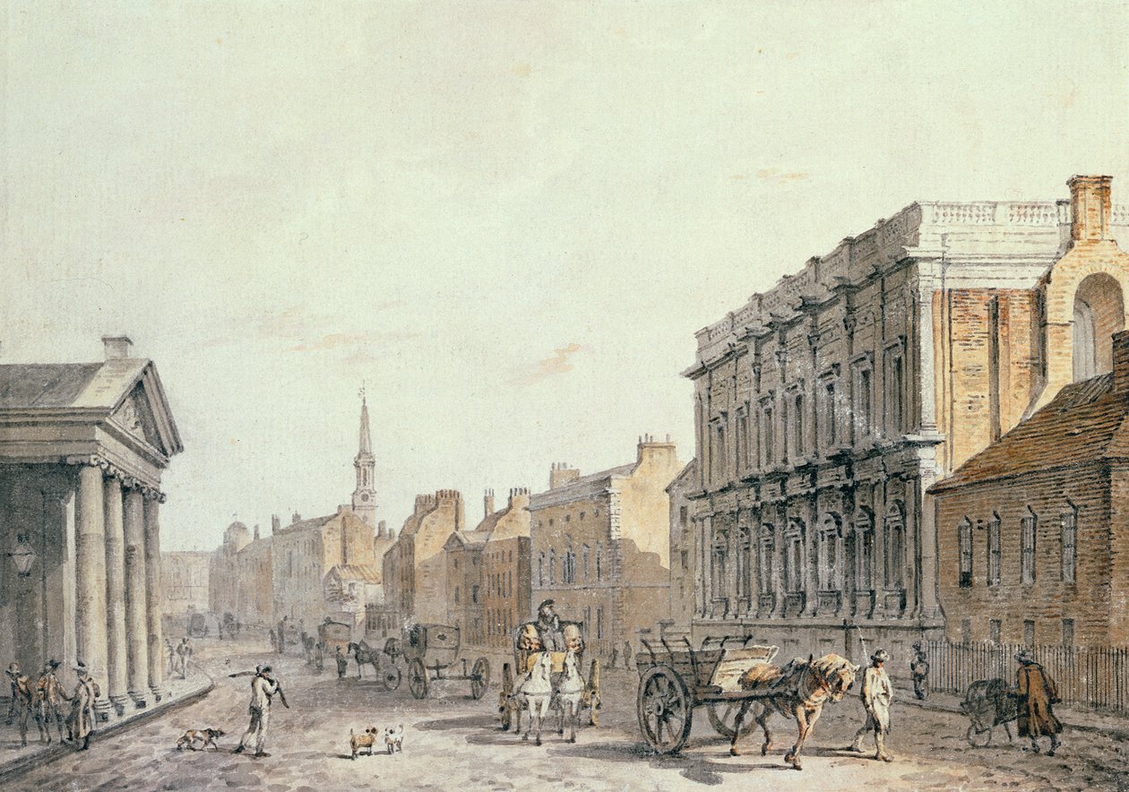 london · street scene · thoroughfare · horse and cart · architecture · facade · horse and carriage · pavement · city · Private Collection / Bridgeman Images |