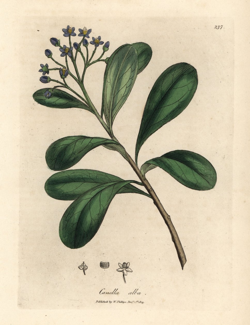 Blue-flowered, laurel-leaved canella, Canella alba(Blue-flowered, laurel-leaved canella, Canella alba, Canella winterana)James Sowerby |