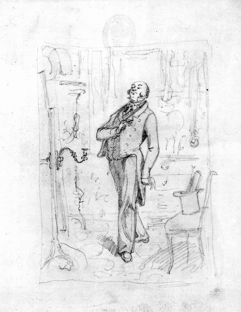 bald · peculiar · dandy · gentleman · waistcoat · suit · pants · chair · inside |