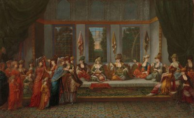 ottoman · orientalism · orientalist · painting · women · female · turkey · turkish · christian · oriental · constantinople · istanbul · islamic · wedding · marriage · bride · religious · religion · muslim · moslem · islam · interior · visitors · guest · gifts · reception · greek orthodox · orthodox · levant · Rijksmuseum, Amsterdam, The Netherlands / Bridgeman Images