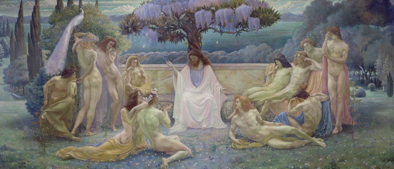 19th century · antiquity · colour · education · france · europe · ancient greece · imagination · garden · youth · nudity · painting · plato (-428 - 348) · philosopher · outside · mzpainting · blossom · · Musee d'Orsay, Paris, France / Bridgeman Images |