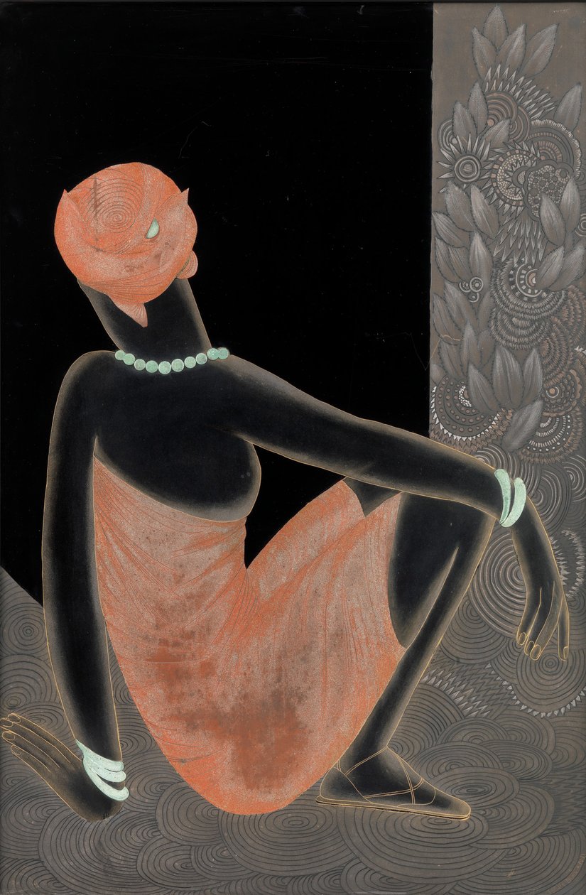 painting · french · swiss · art deco · lacquer · portrait · woman · female · pattern · jewelry · jewellery · geometric · floral · metal · turban · foliage · engraving · engraved · lacquer · Metropolitan Museum of Art, New York, USA / Bridgeman Images |