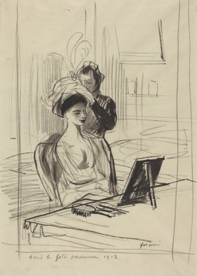 female · women · woman · people · arts · country · french · france · costume · occupation · clothes · headdress · washington · dress · party · turban · turbans · location · century · drawing · profession · mirror · clothing · crayon · furniture · impressionist · servant · headgear · maid · head-dress · dressing table · fancy dress party · black white · black and white · national gallery of art · impressionism · 1910s · 20th century · servants · fancy dress · dressingtable · post impressionism · post impressionist · post-impressionism · post-impressionist · jean louis forain · jean-louis forain · jean forain · forain · jean louis · forain · jean-louis · forain · jean · heritage art · dressing-table · brush and brown-black ink and black crayon · Heritage Art/Heritage Images