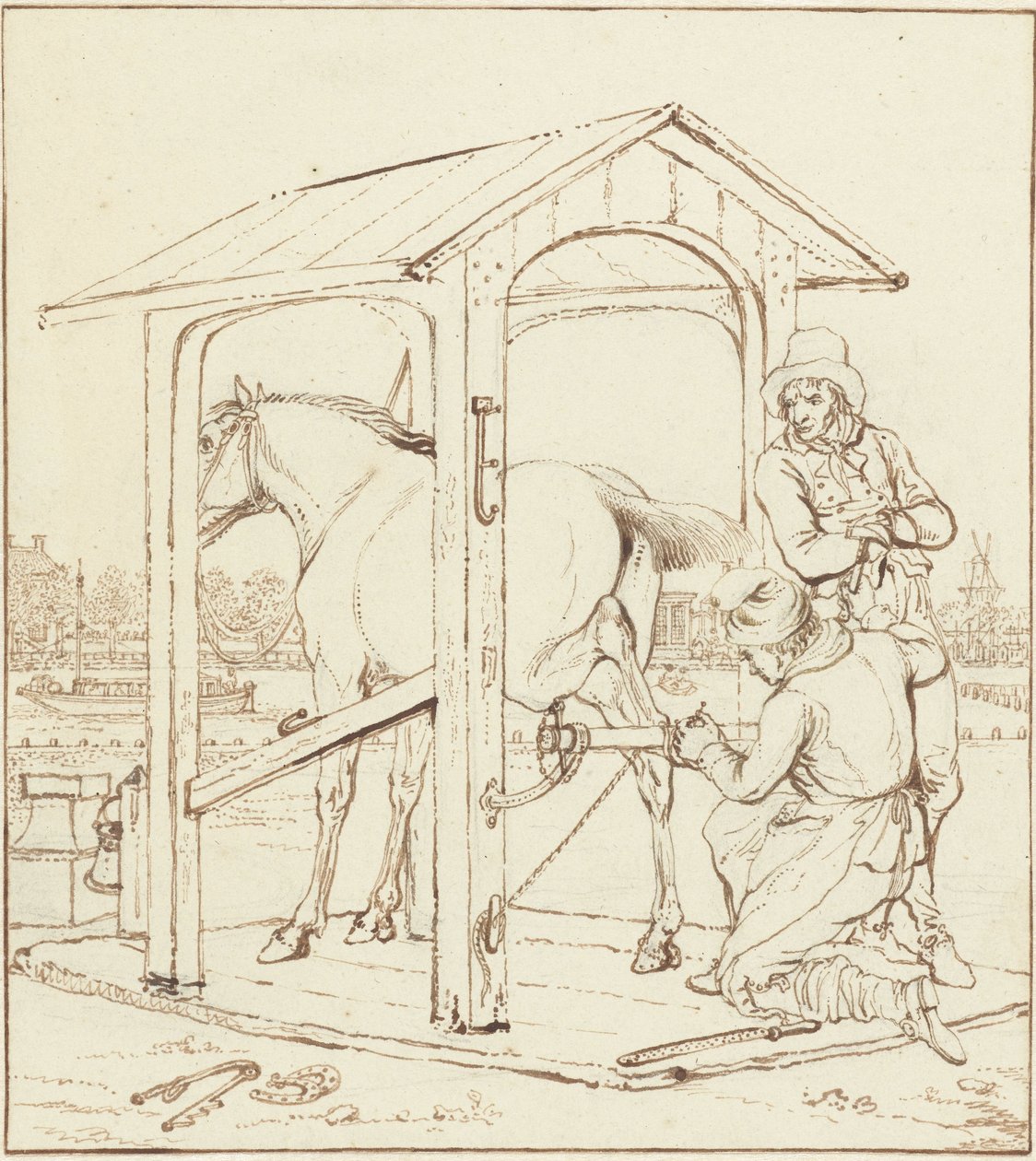 Shoeing a Horse(Het beslaan van een paard)Johannes Vinkeles(draughtsman) |