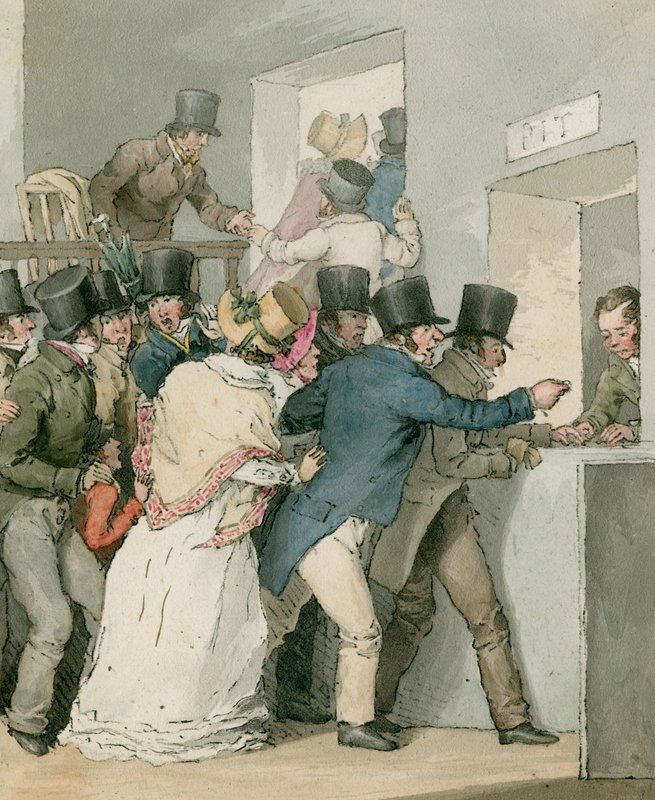 benefit · night · theatre · goers · rush · Royal Academician · Private Collection / Bridgeman Images · / Look and Learn |