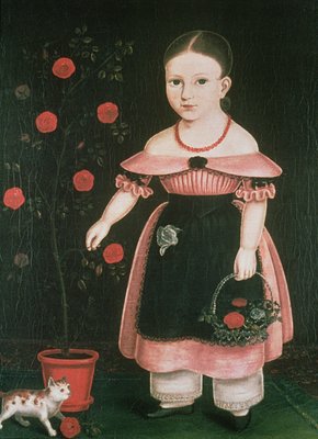 american primitive · naive · folk art · children · female · pet cat · National Gallery of Art, Washington DC, USA / Bridgeman Images