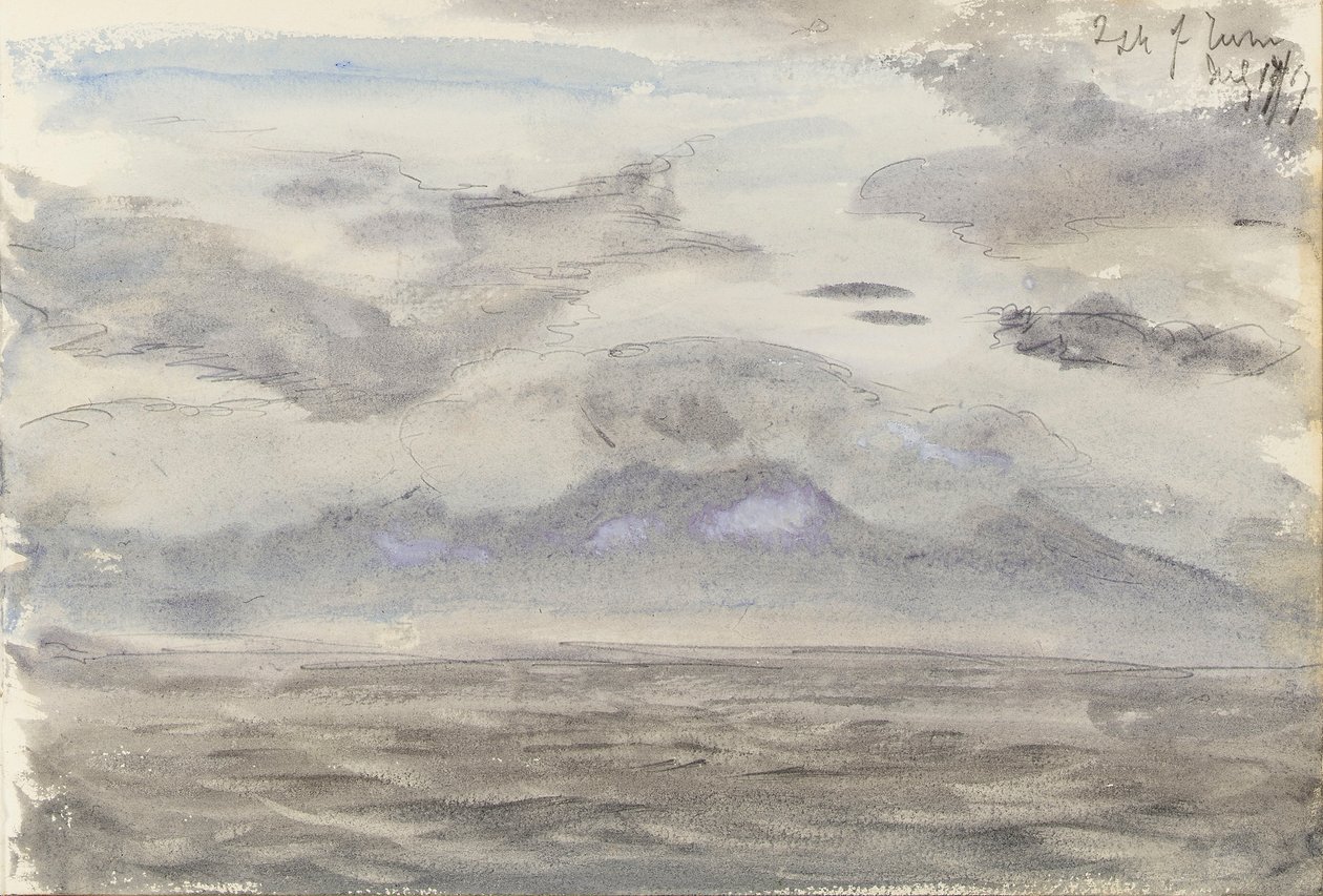 19th century · colour · drawing · water · grey · horizon · nature · cloud · weather · ocean · painting · nobody · watercolour · mzdrawing · mzpainting · seascape · · National Maritime Museum, London, UK / Bridgeman Images |